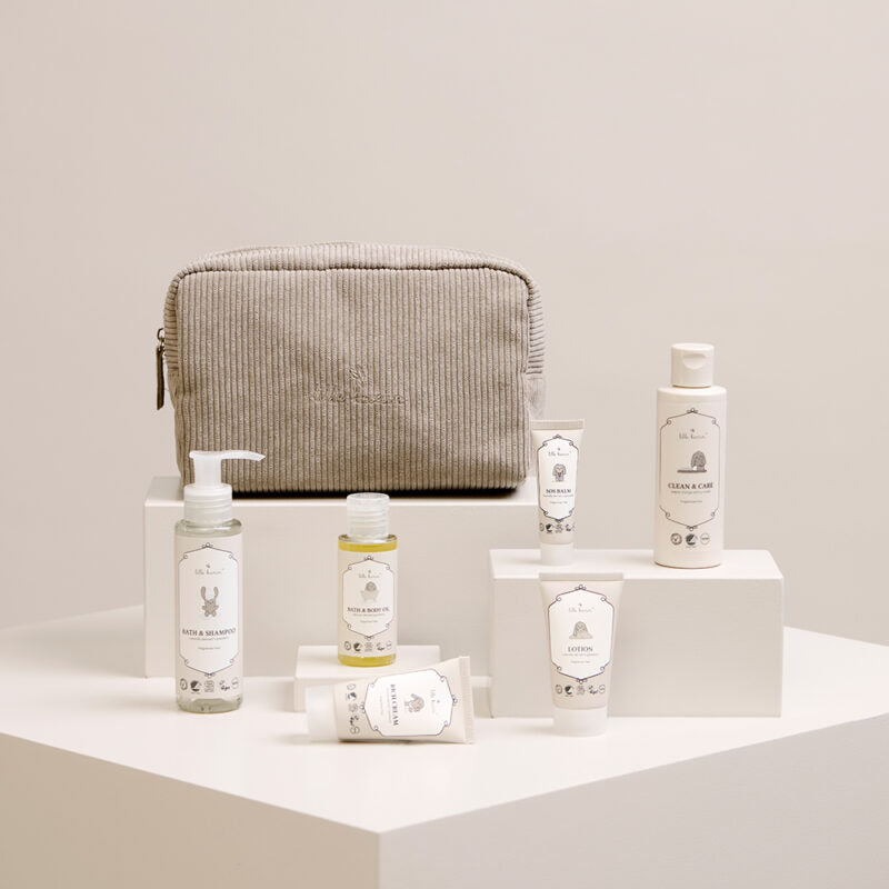Vores Starterkit består af 6 skønne produkter der kommer i en flot og praktisk toilettaske. Den flotte og rummelige taske giver god plads til alle produkterne, samt efterlade plads til du kan bringe en ble, vådservietter eller lignende, du også har brug for, når du er på farten.